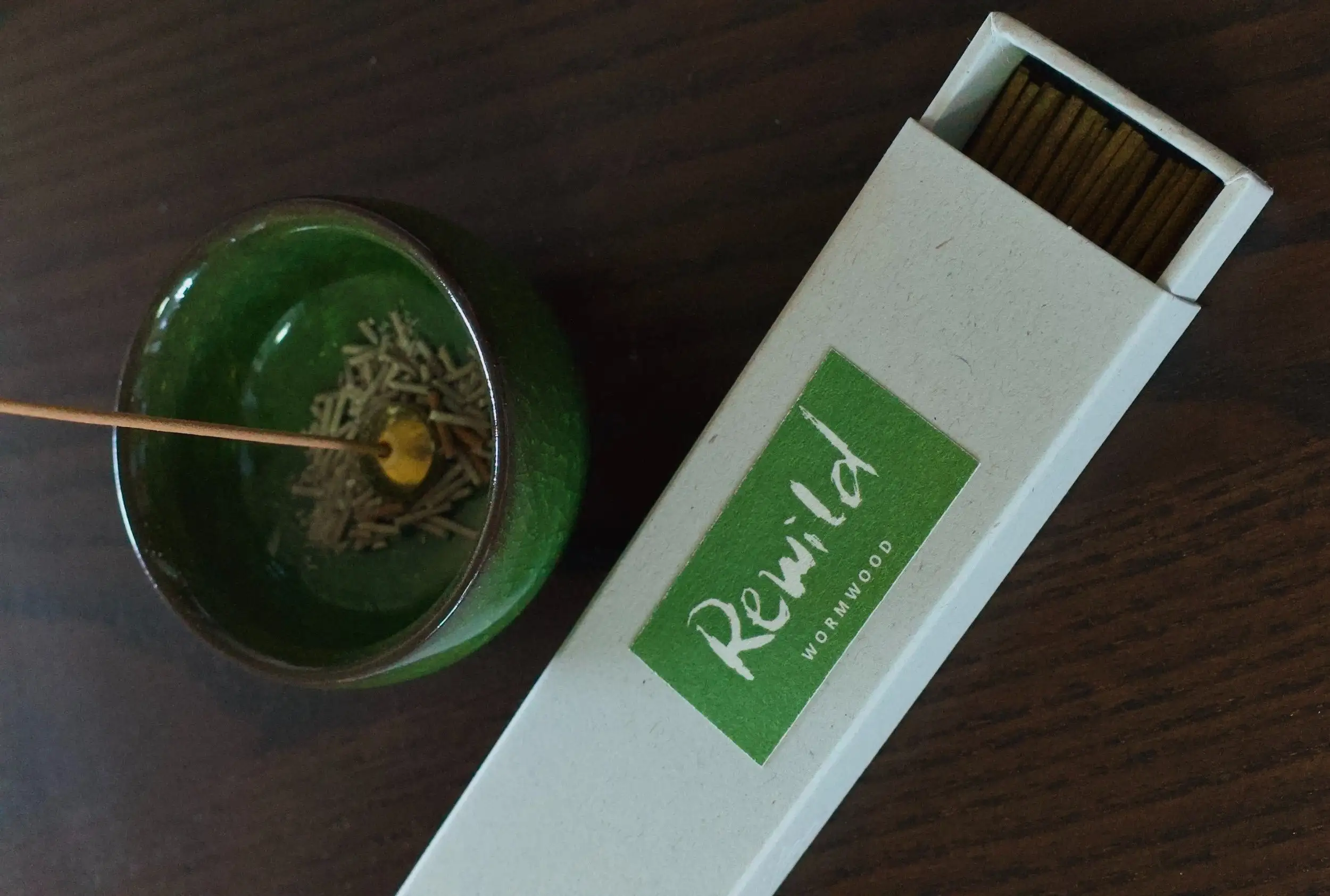Made with wormwood (aka mugwart or artemisia), a traditional Chinese herb. With an herbal and green scent, wormwood is traditionally used to deworm as its name in springtime. The strong smell works best in an outdoors space, where the spread scent establishes a much gentler connection to nature than indoors.