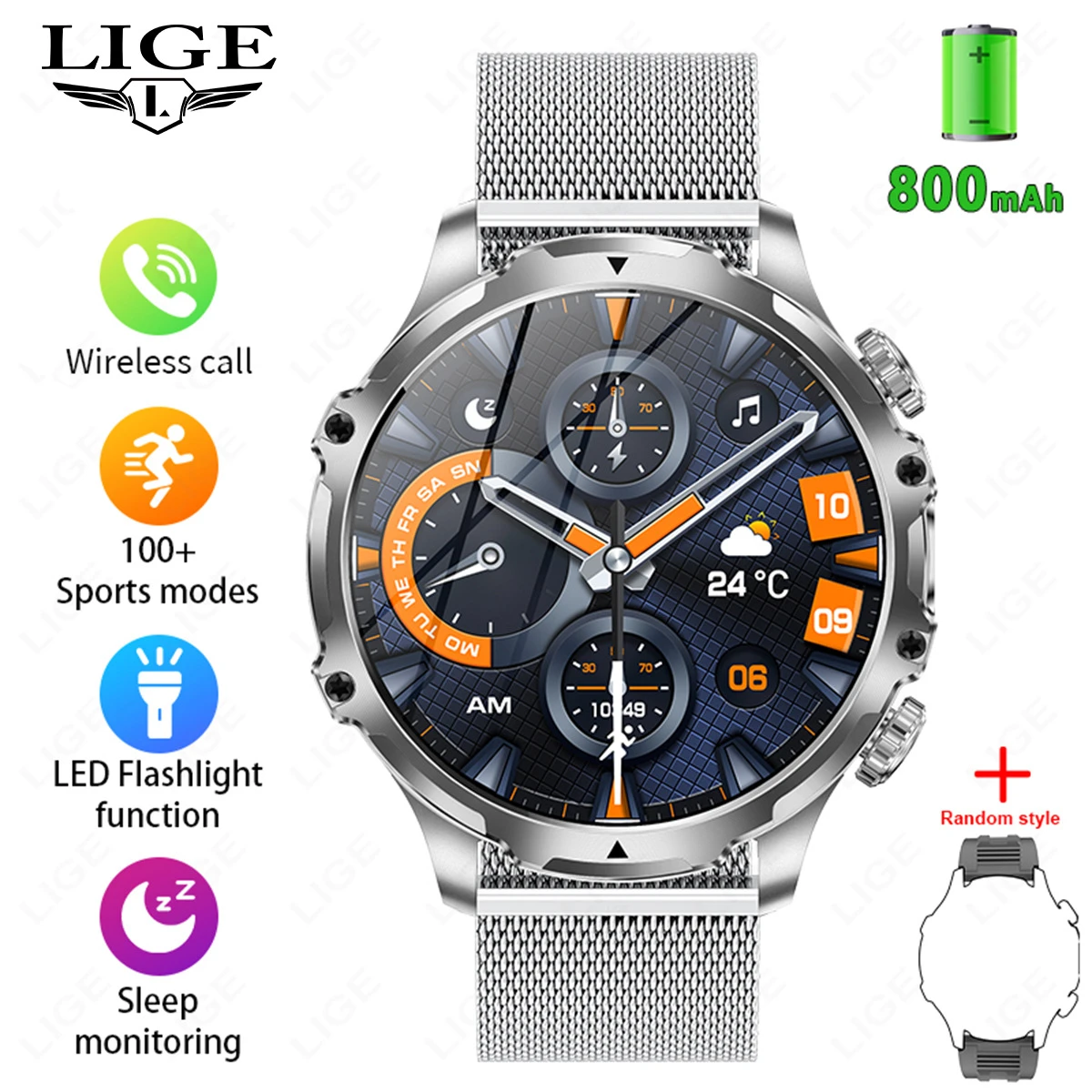 Features: Waterproof, Photography, Pedometer, Heart Rate Monitoring, Bluetooth Calling, Remote Selfie, Sleep Monitoring, Blood Oxygen Detection, Sports Tracking