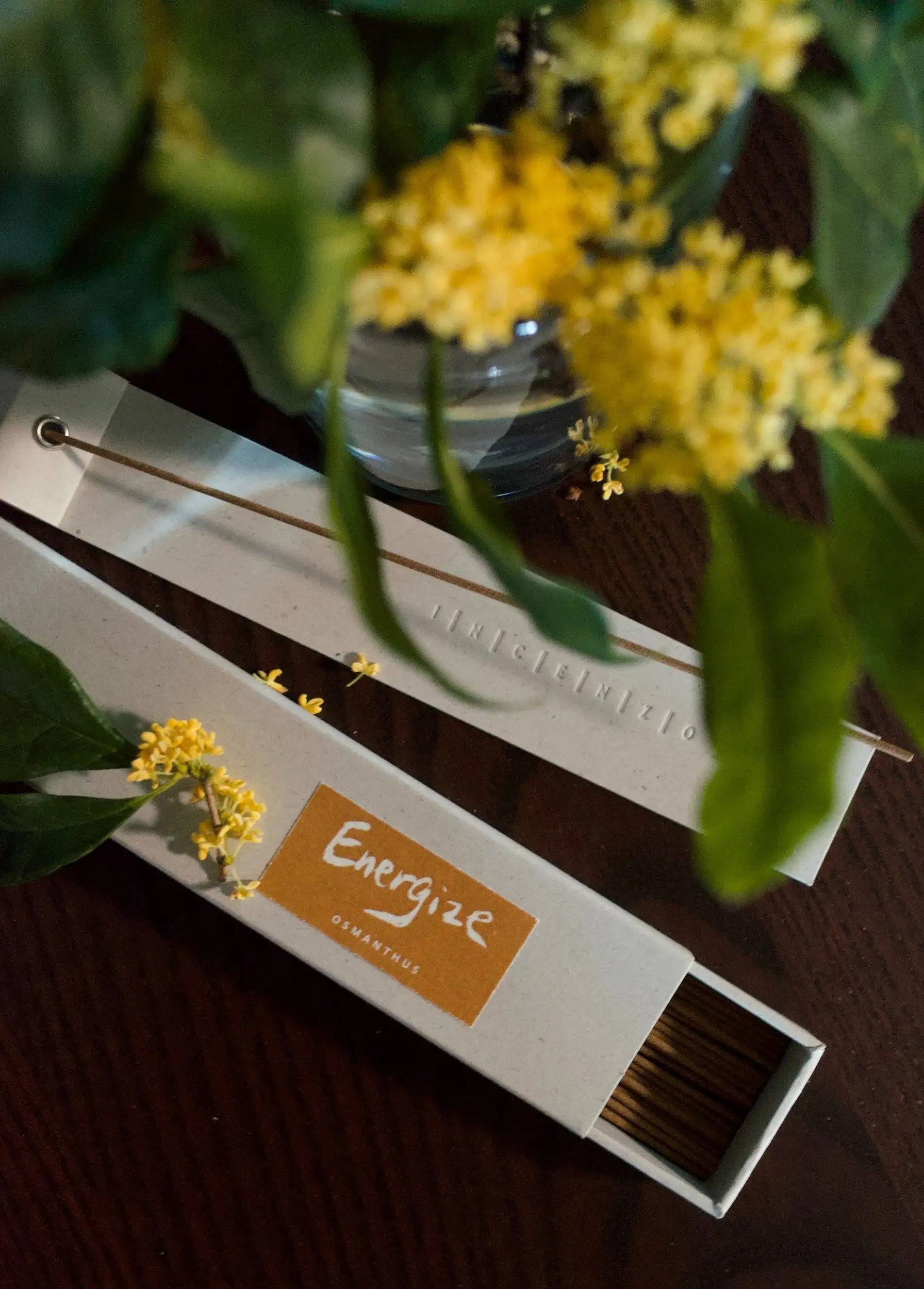 Traditional Taoist incense with the floral scent from osmanthus. Osmanthus is one of the most representative flowers of autumn, blooming through small and delicate petals of golden yellow and bright orange. The corolla spreads a lightly sweet and energizing scent into the air, announcing the arrival of the harvest season.