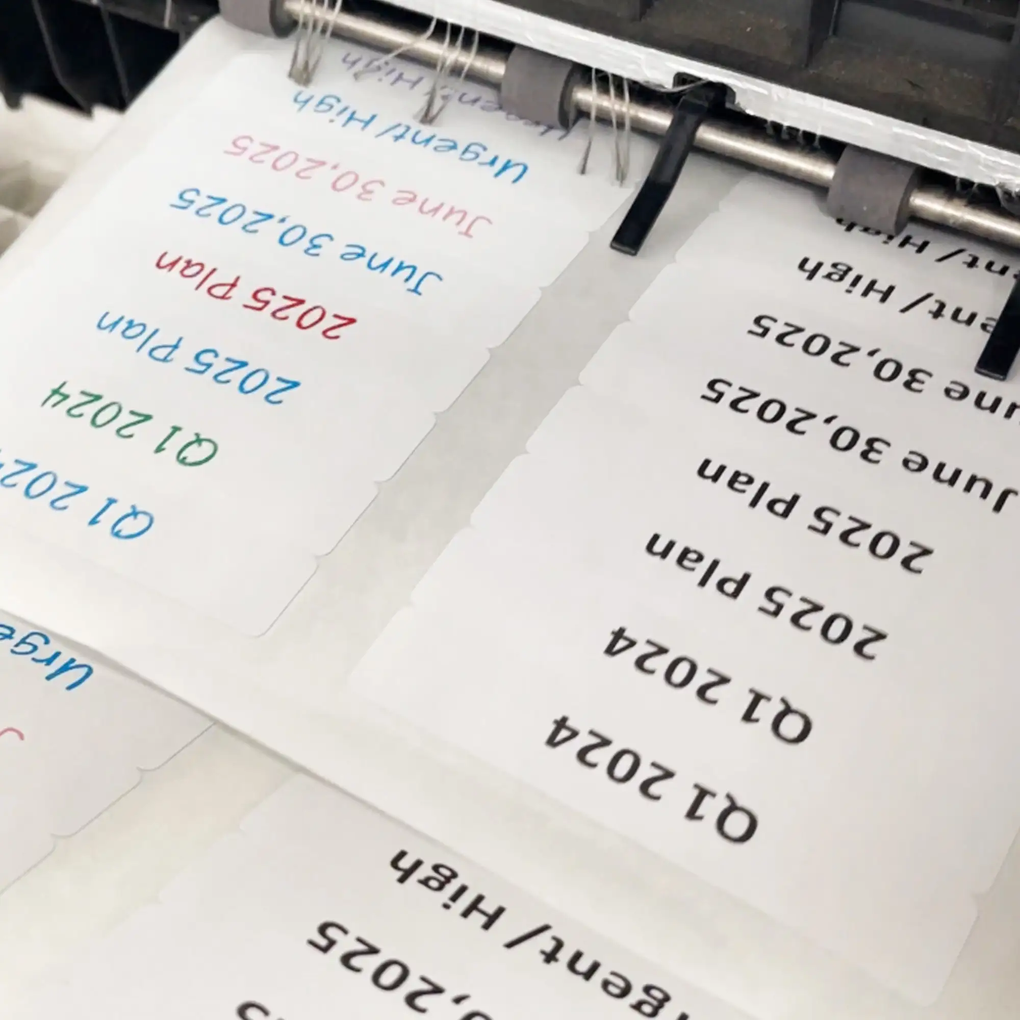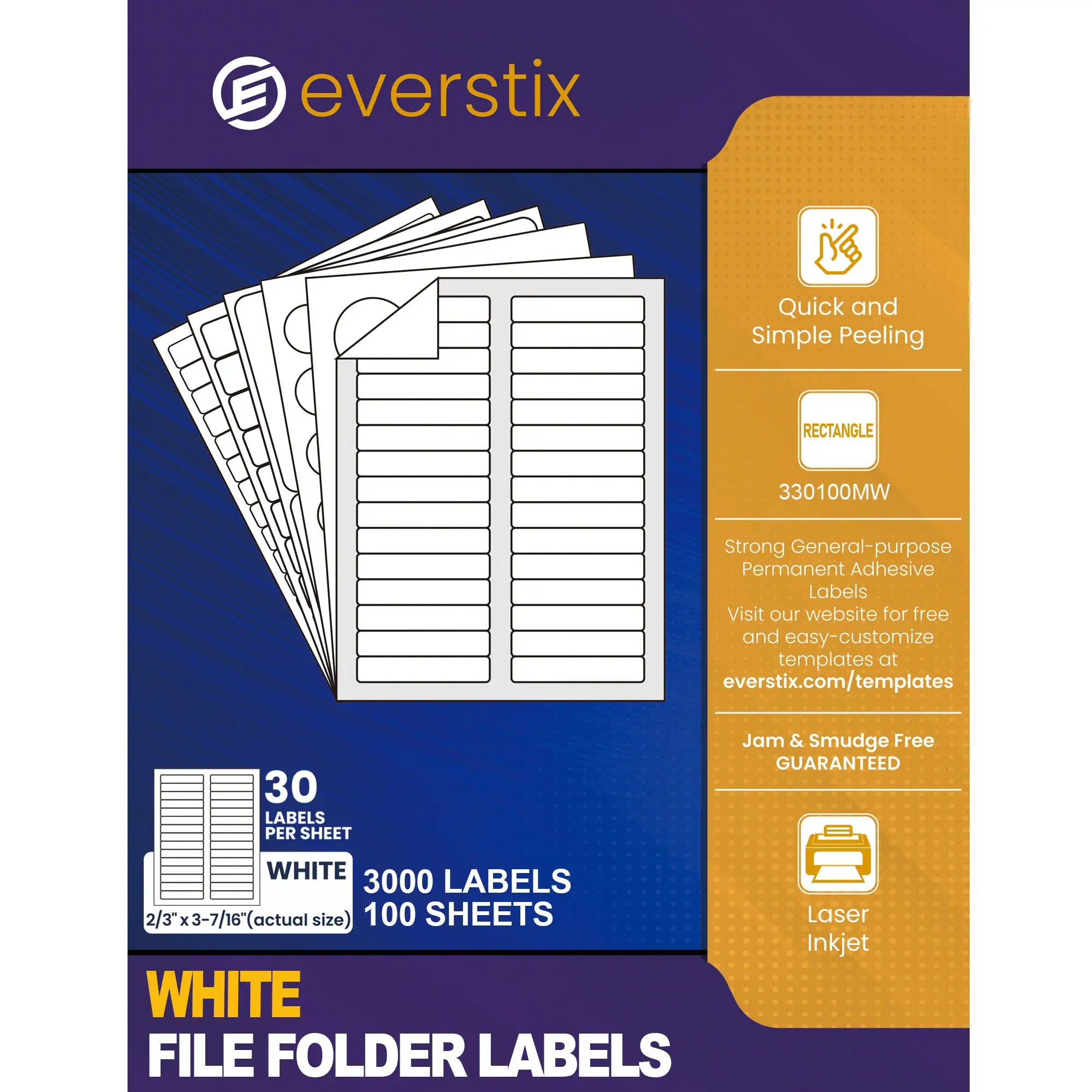 • White label paper with a permanent adhesive that aggressively holds to your file folders and is guaranteed to stick on paper, cardboard and envelopes