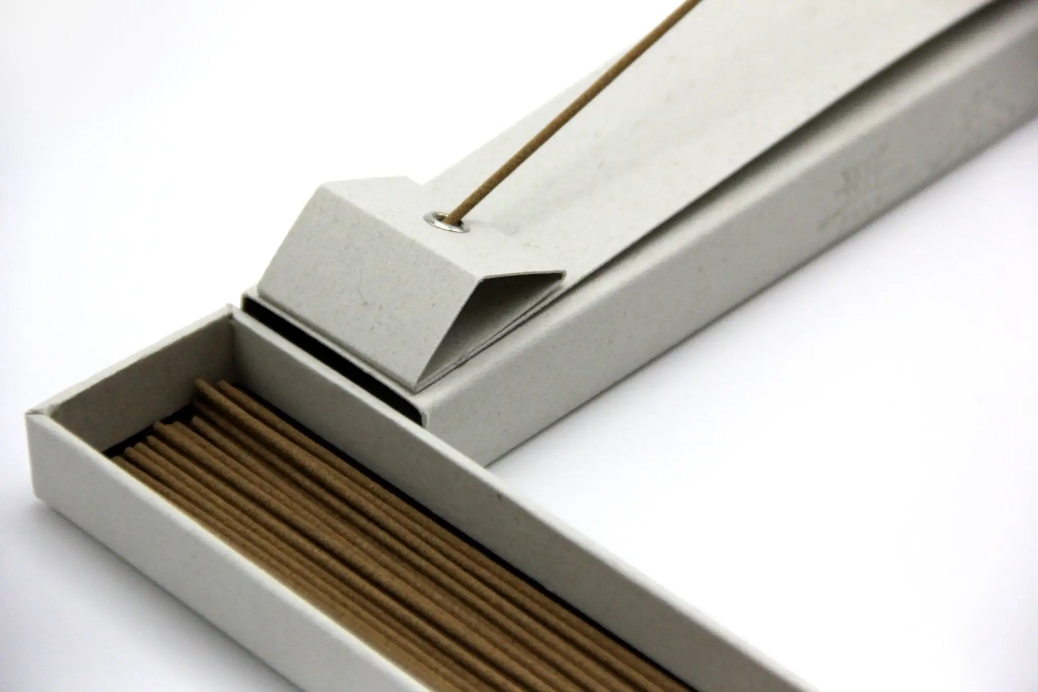 Each package includes a portable incense holder, designed especially for first-time users. While we've rigorously tested its safety, we recommend using it cautiously and always keeping it within sight, as it is made from paper.