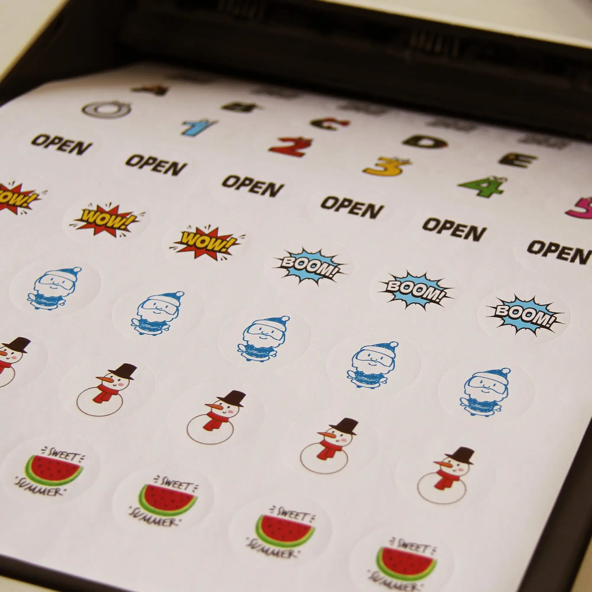 • Customize round sticker labels by hand, with your own text and graphics, or our bespoken printing services